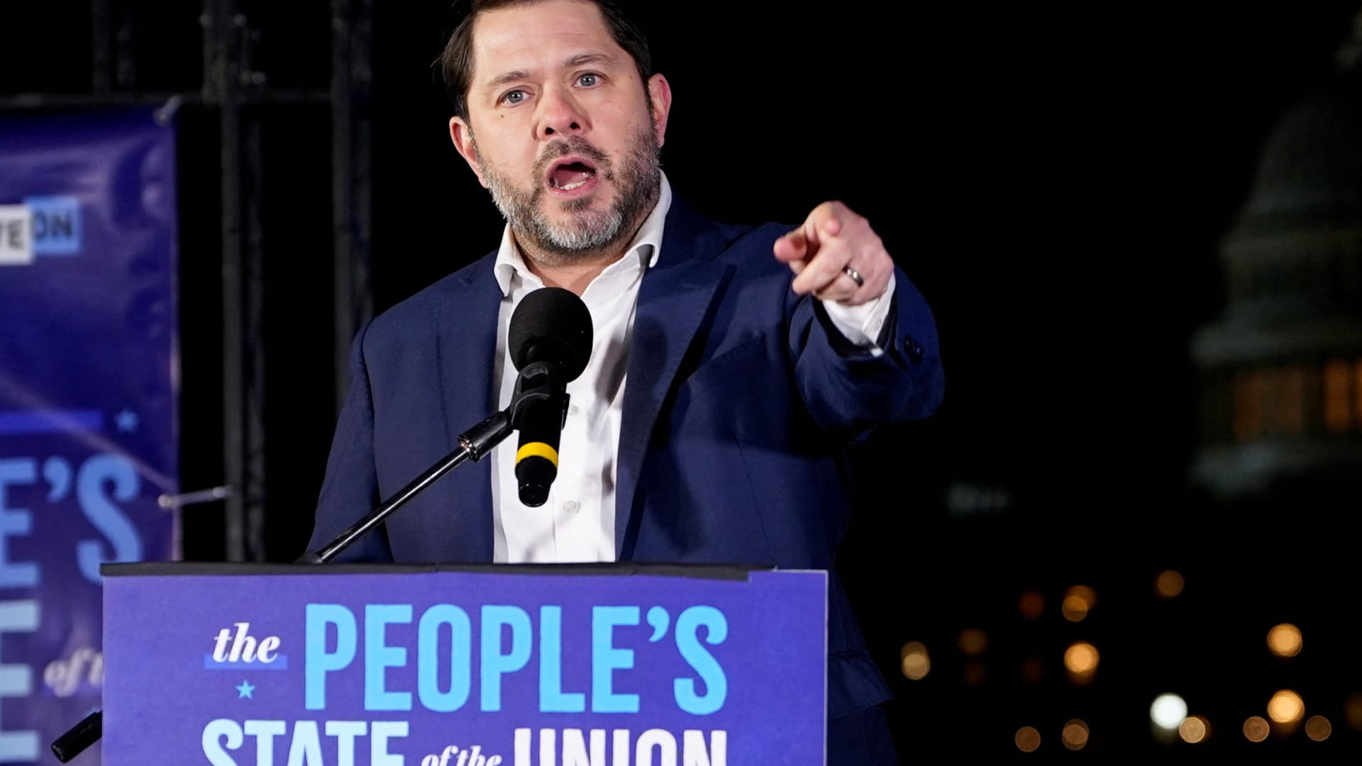U.S. Sen. Ruben Gallego (D–AZ) speaks during the “People’s State of the Union” event ahead of U.S. President Trump’s State of the Union address in Washington, D.C., U.S., Feb. 24, 2026.
