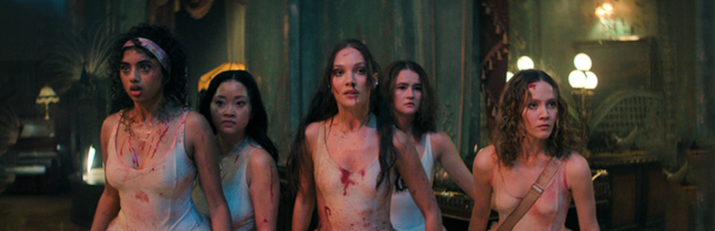 After landing in Hungary, a day before the grand showcase, the group’s bus breaks down in the middle of nowhere. Fretting over the dance of their lives, they have to steel themselves for something far worse. Opting to keep out of the forest, they take shelter in a dingy roadside inn run by Uma Thurman’s Devora Kasimer, a fallen ballet prodigy, and her henchmen. It doesn’t take long for the danger to make itself known, with the young women’s mentor (Lydia Leonard) as the first casualty. As the ballerinas hatch a plan to come out of their predicament alive, bodies begin to drop dead.