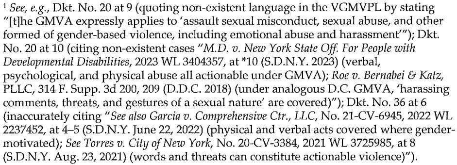 [B]oth Tantaros’s opposition to Brown’s motion to dismiss the complaint and her unauthorized sur-reply contain both inaccurate and non-existent citations to cases and statutes. After Brown’s counsel notified Tantaros of citation issues in her opposition brief, Tantaros filed a “Notice of Correction of Citations” which purported to “immediately withdraw[] voluntarily” some but not all of the non-existent or inaccurate citations in her opposition to Brown’s motion.