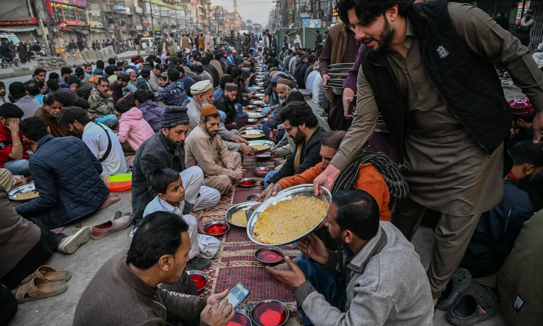 A volunteer distributes iftar meals on the first day of the Islamic holy fasting month of Ramazan in Rawalpindi on February 19, 2026. —AFP