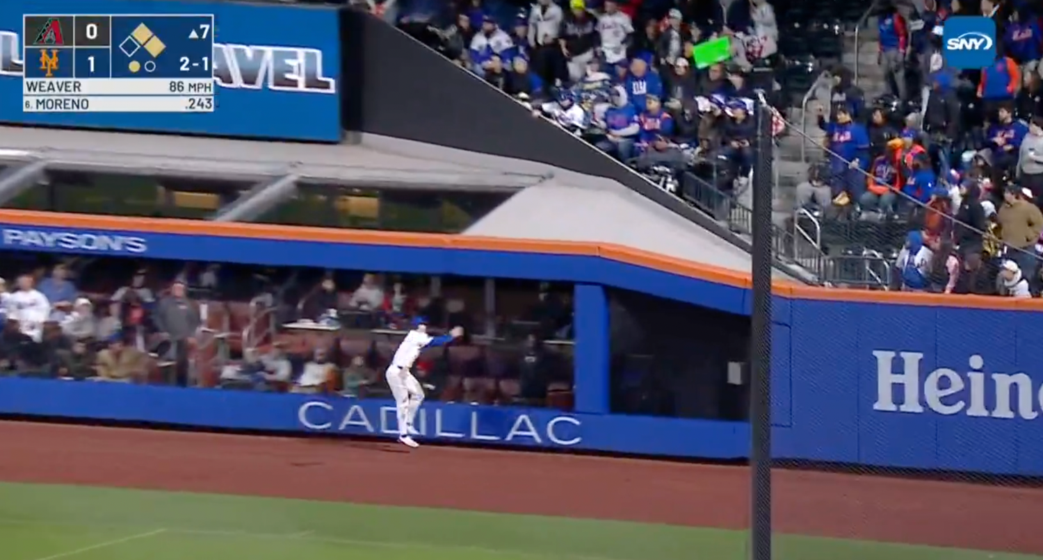 As for the play in question, Gabriel Moreno hit a deep drive to right field off Luke Weaver in the seventh inning that was carrying toward the line from the moment it left the bat. Baty gave chase, angling back toward the wall, and got there, but the ball caught the base of the fence before he could, ricocheting onto the warning track while Moreno pulled into second.