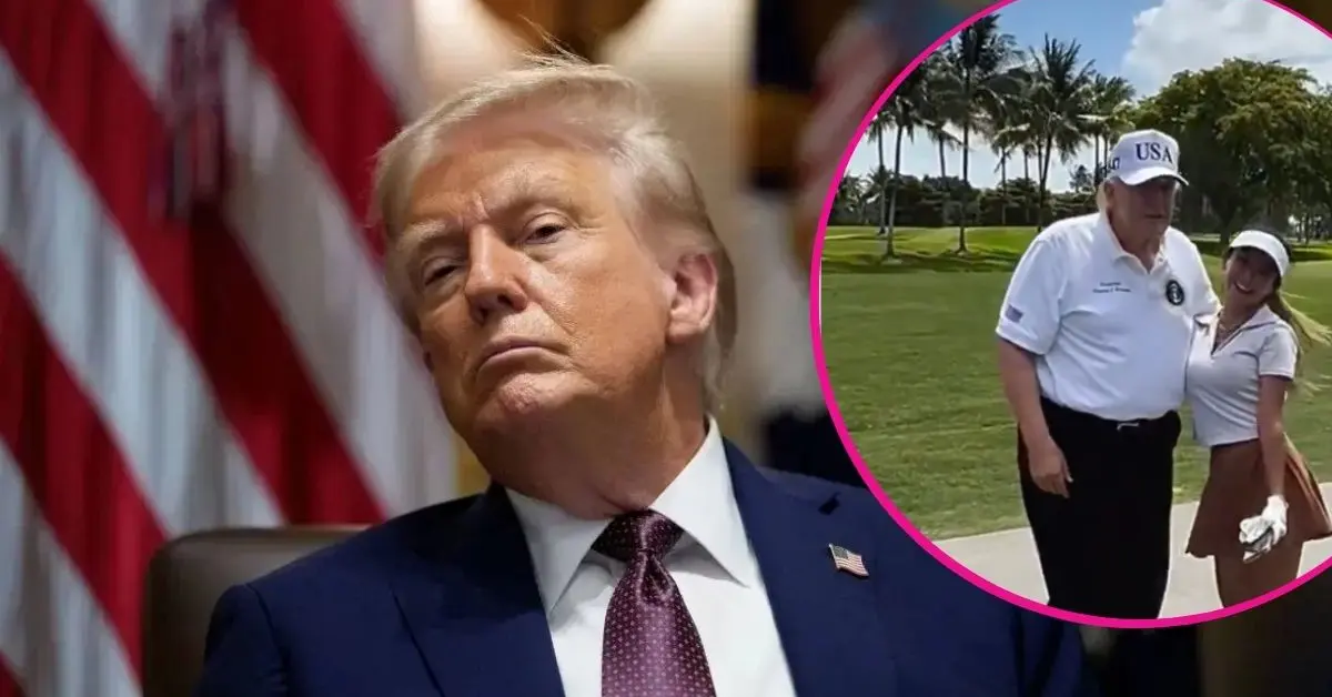 The female giddily embraced Donald Trump on the golf course.