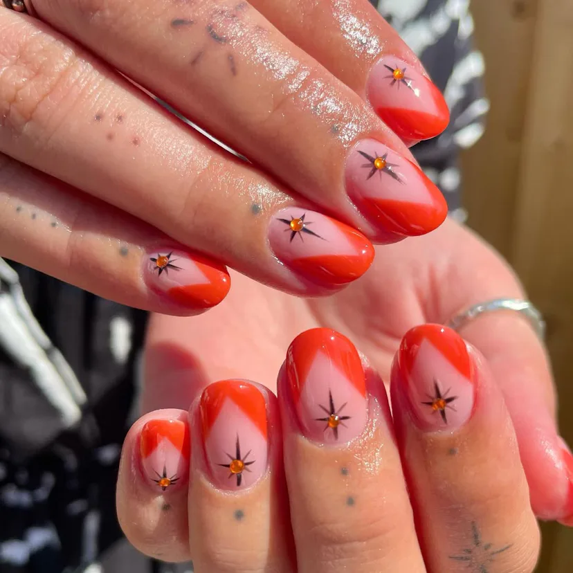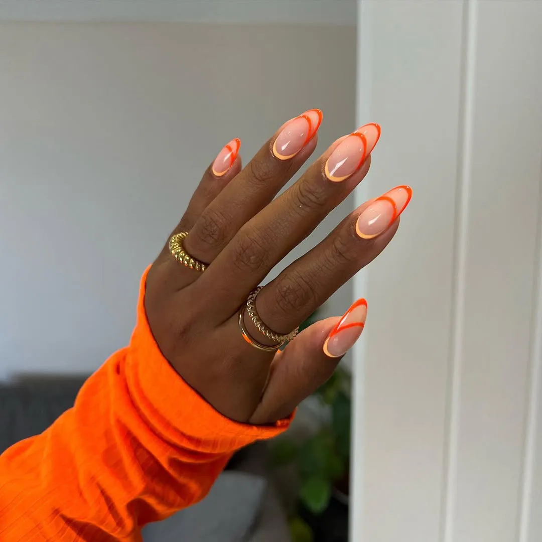If you’re tired of a regular French tip, this outlined version is the smart switch. The pop of Aperol orange keeps it feeling warm-weather ready without going over the top.