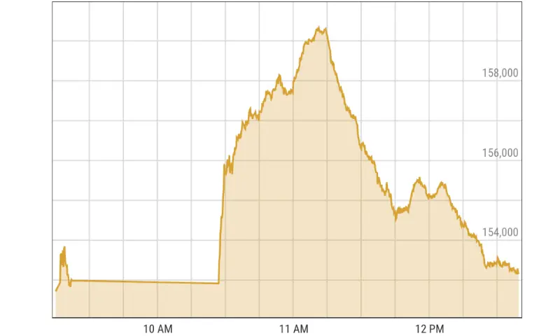 After an early crash and a temporary market halt, the KSE-100 benchmark index resumed trading, making a slight recovery by midday, but fell sharply again by 1:30pm.