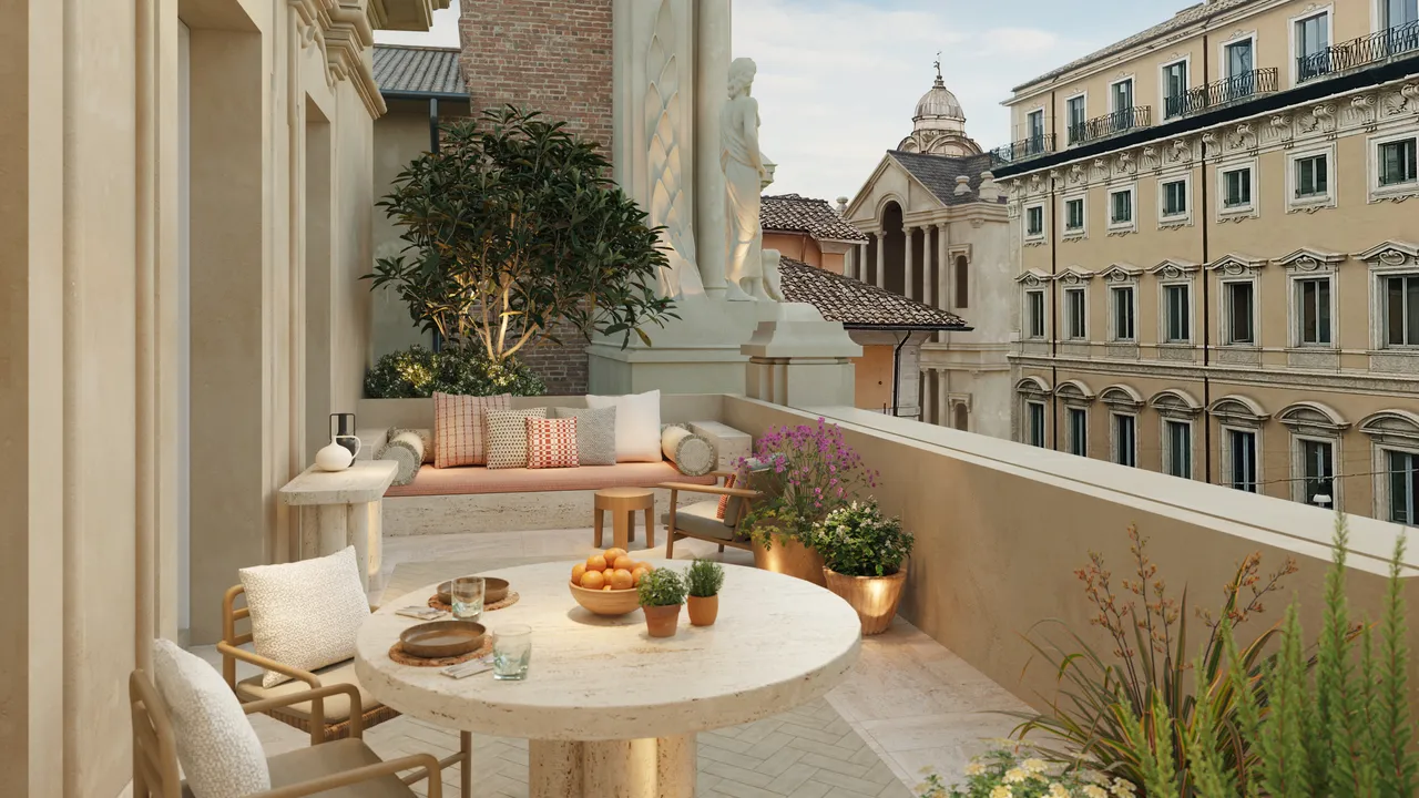 With so many standout ultra-high-end hotels in Rome, it’s hard to find one that truly stops you in your tracks. Romeo Roma is one of those, with extraordinary design by Zaha Hadid that expertly blends the ancient history of Rome with futuristic charm. Glossy ebony accents, pops of scarlet red, and dynamic lines and waves are combined with pillars, arches, and 17th-century frescoes.