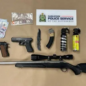 Four people are facing a total of 20 charges following a traffic stop that led to the seizure of weapons,…