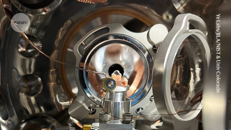 Researchers are attempting to build the world’s first nuclear clock. This is a view inside the vacuum chamber that holds…