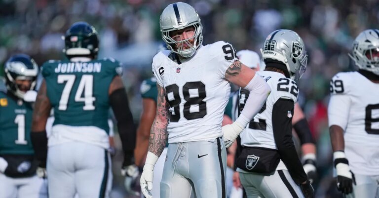 Dec 14, 2025; Philadelphia, Pennsylvania, USA; Las Vegas Raiders defensive end Maxx Crosby (98) in the tunnel against the Philadelphia…