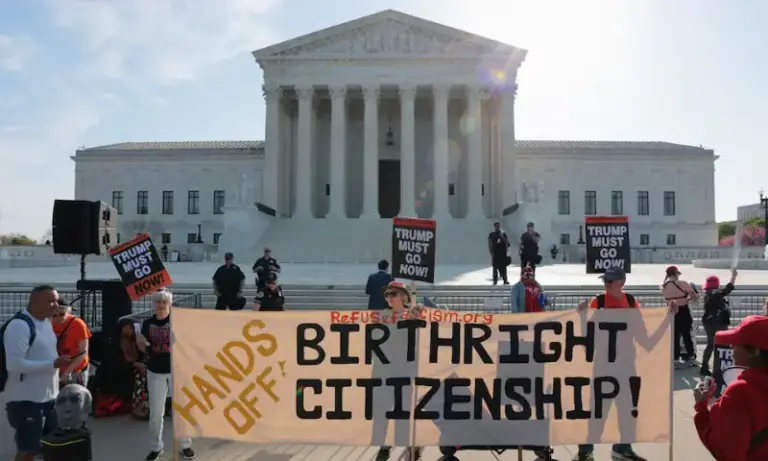 The nine justices of the U.S. Supreme Court are debating whether the U.S. Constitution grants citizenship to every child born…